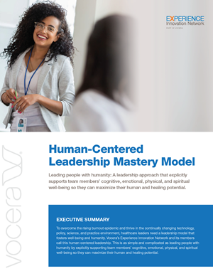Vocera’s Experience Innovation Network and its members call this human-centered leadership. This is as simple and complicated as leading people with humanity by explicitly supporting team members’ cognitive, emotional, physical, and spiritual well-being so they can maximize their human and healing potential.