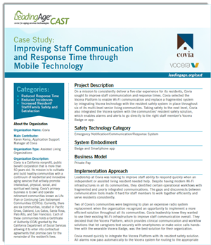 Learn about how Covia selected Vocera hands-free communication solutions to replace a fragmented system and thereby improved resident and staff safety throughout its multi-level senior living communities. Save steps and time by reaching individuals and groups instantly without needing to know names or numbers. Communicate safely and efficiently, even while wearing PPE.