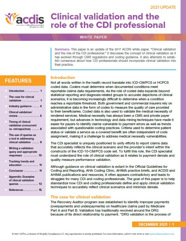 Learn more by downloading the ACDIS Clinical Validation and the Role of the CDI Professional report.