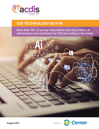 In partnership with Cerner, the Association of Clinical Documentation Integrity Specialists (ACDIS) CDI Leadership Council conducted a nationwide survey on technology buy-in and asked members to share their organizational approach to this topic. In this industry report, readers get a full inside-look at the expert CDI leadership conversation and the data surrounding the start of CDI technology buy-in!